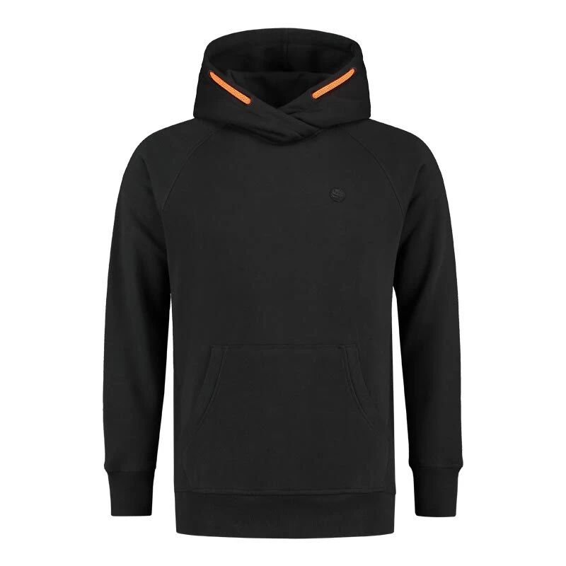 Le Black Hoodie un sweat à capuche épais et chaud, avec un logo guru noir sur le devant et le logo guru en grand dans le dos. Des boutons à bascule/tireurs orange sur la capuche pour le serrage. Coutures élastiques aux poignets et à l’ourlet.