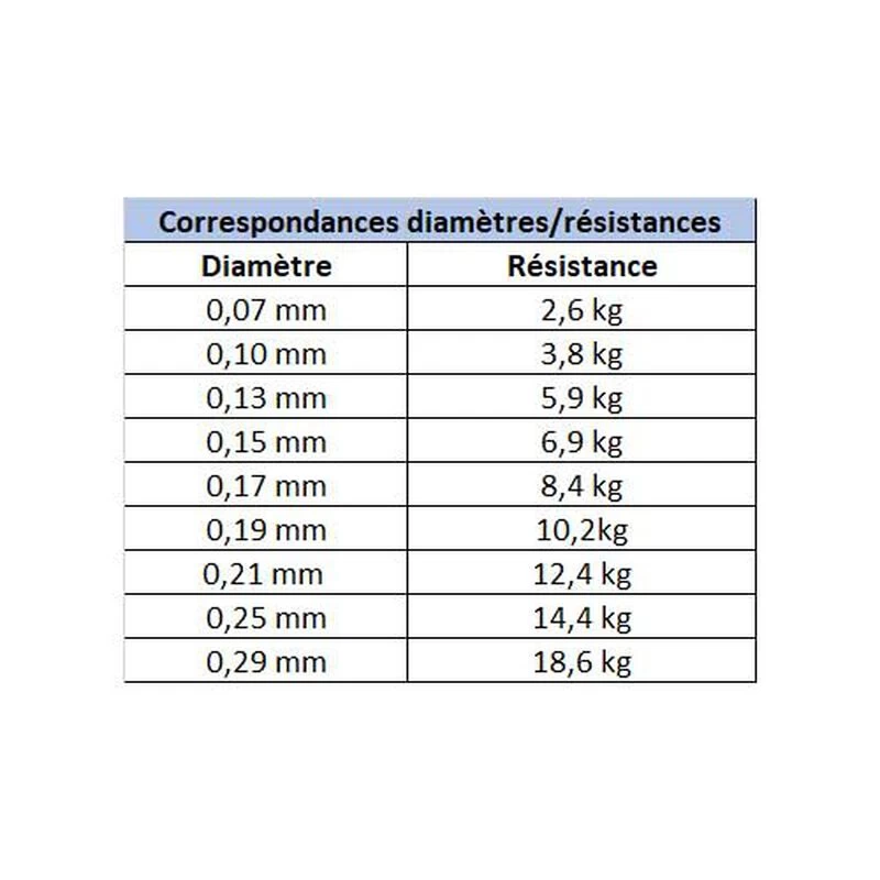 Correspondance diamètre / résistance :